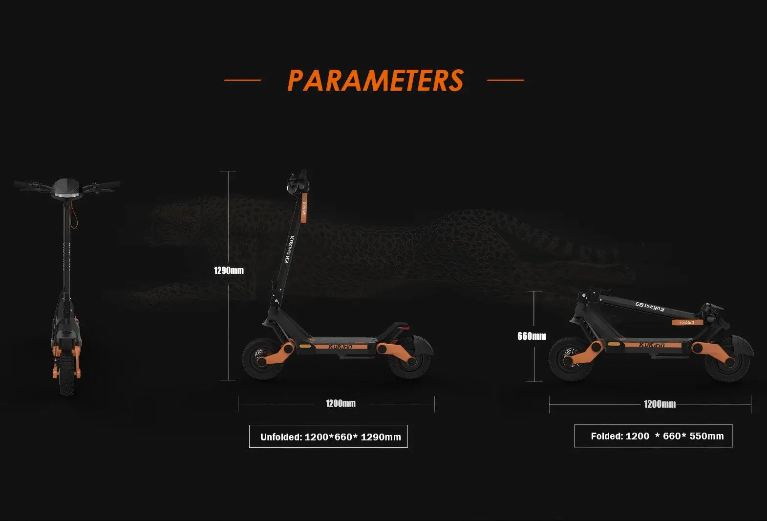 Mit der One-Touch-Falttechnologie lässt sich der KuKirin G3 in Sekundenschnelle in eine kompakte Form zusammenfalten, sodass er problemlos im Kofferraum eines Autos, in der Ecke eines Büros oder an jedem anderen Ort in Ihrem Zuhause verstaut werden kann. Mit seinem leichten Design bietet der KuKirin G3 wirklich die Freiheit, überallhin mitzunehmen.