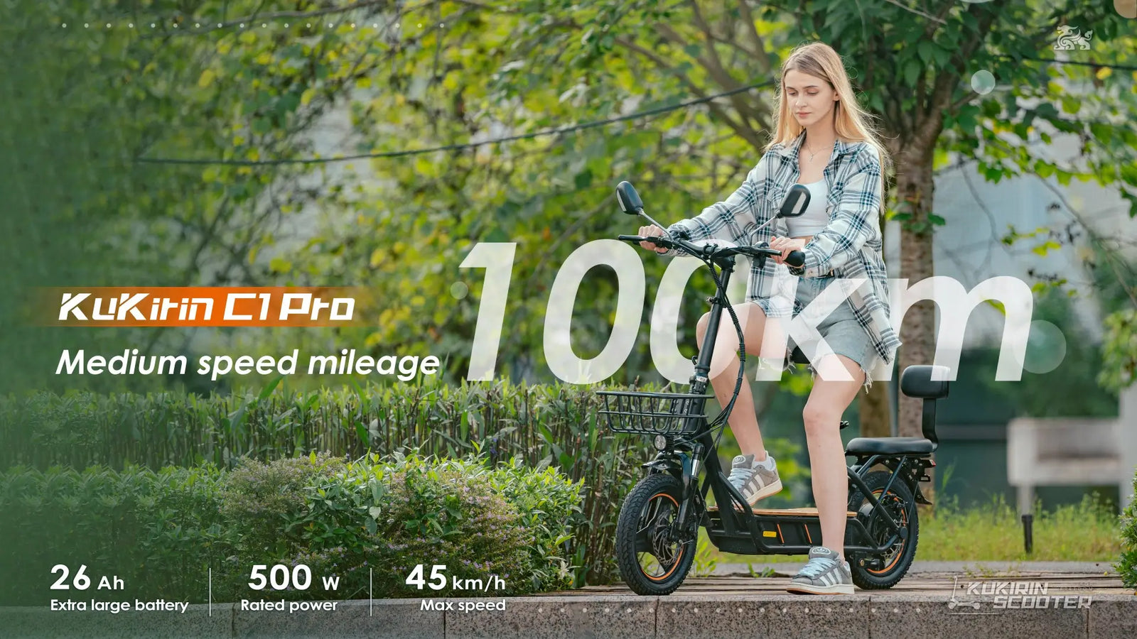KuKirin C1 Pro equipped with an unprecedented 48V/26Ah high-performance battery pack, you can enjoy a worry-free range of up to 100 kilometers on a single charge, which is easy to manage for both daily commuting and weekend excursions, and gives you confidence and fun on every trip.