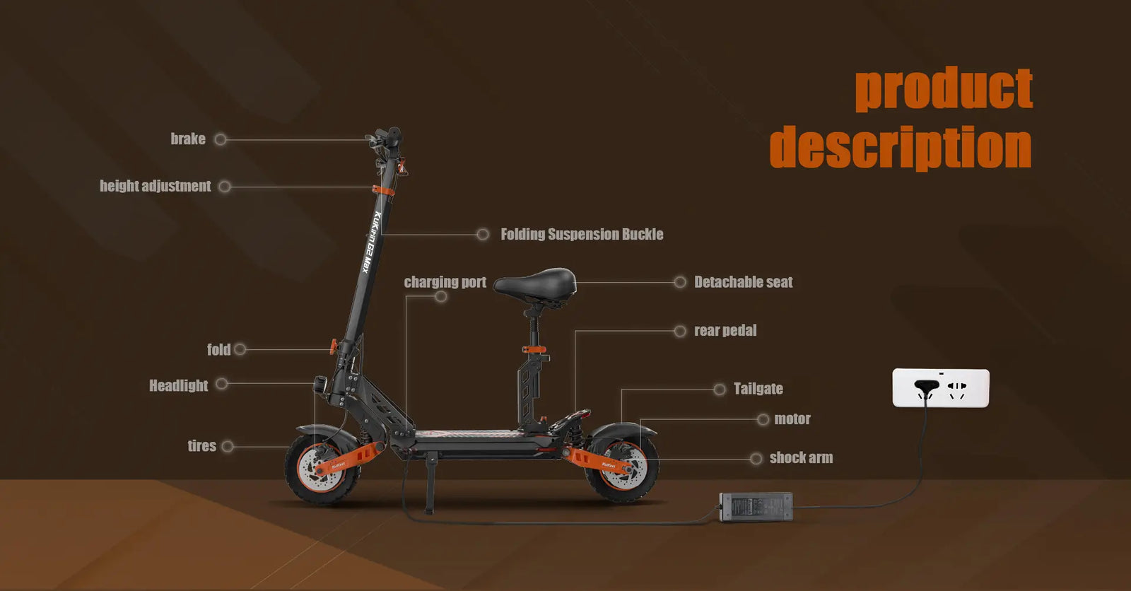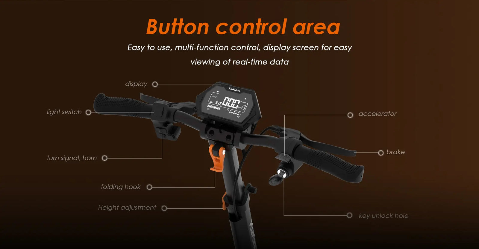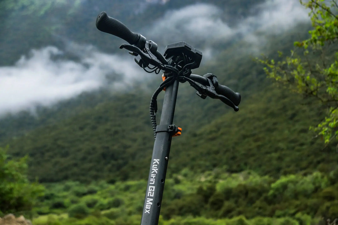 • KuKirin G2 Max with 10 Inch “large”wheel,say "back" to the bumps, give you a steady sense of comfort, high speed over the speed bumps, gently over without stopping, potholes and sandy roads, filtering bumps hand not numb.