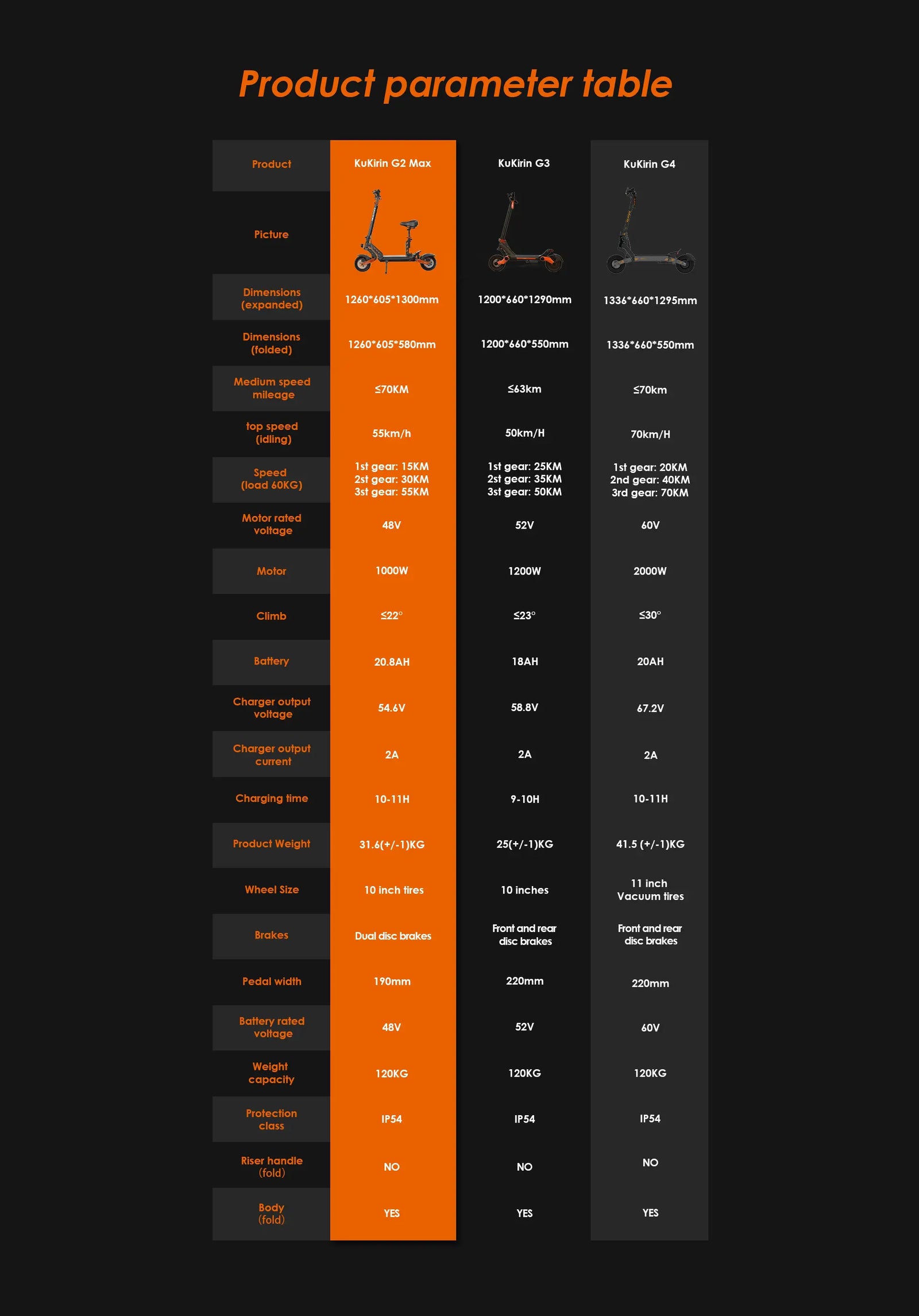 • KuKirin G2 Max with precisely tuned spring dampers to cushion bumps from complex terrain, you can ride it over rough roads to maximize your fun and enjoy a comfortable ride every time you set out.