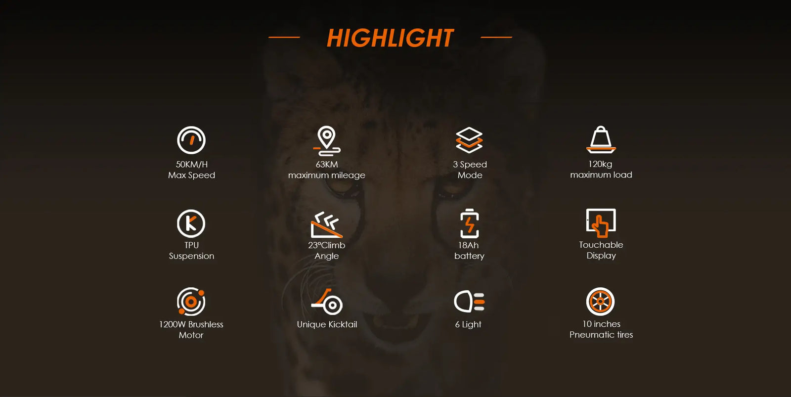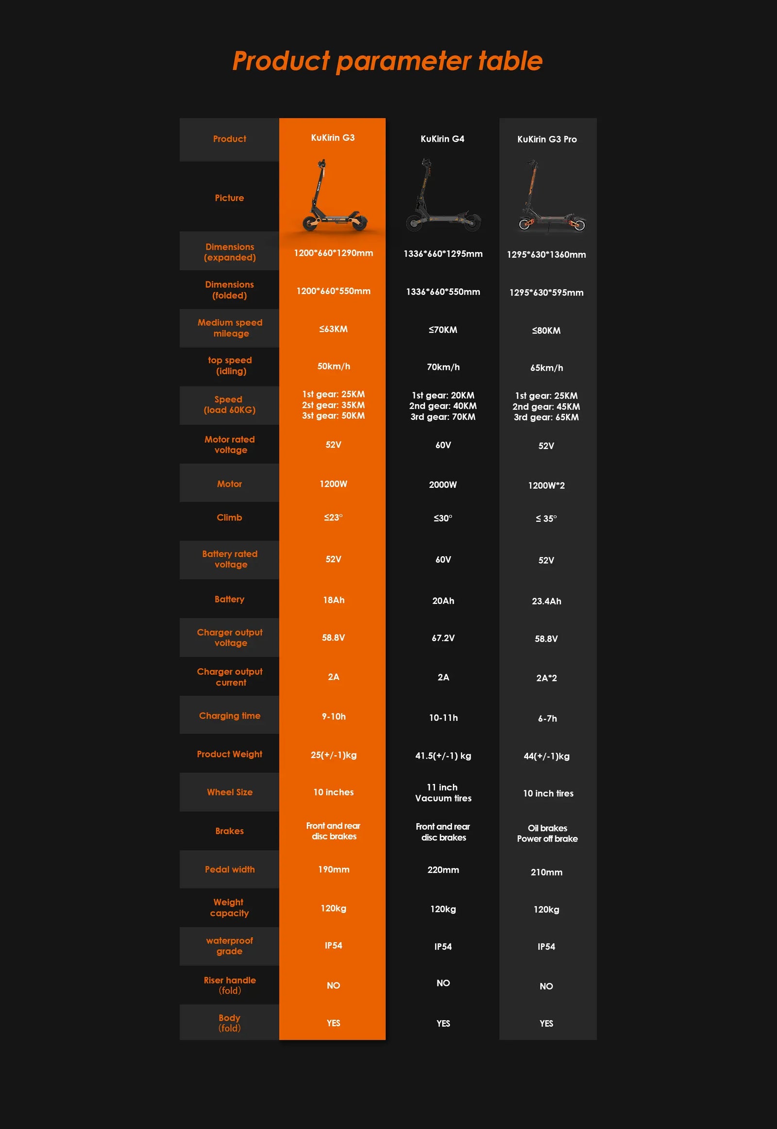 KuKirin G3 equips with 52V1200W high-performance motor.Whether it's a gentle city road or a slightly sloping hill, it maintains a steady output to ensure that your travels are unhindered. The maxium speed is 50km/h,full of passion and effiency for every travel.