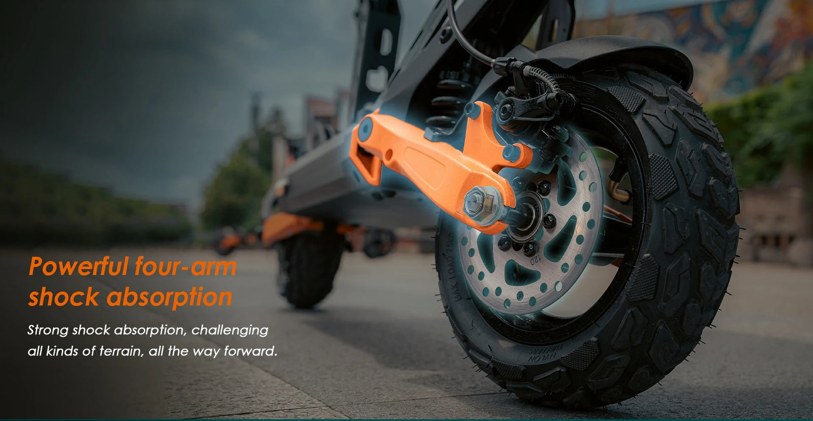 Ausgestattet mit Scheibenbremsen vorne und hinten, ermöglicht eine sensible Bremsreaktion auch bei hohen Geschwindigkeiten eine schnelle und stabile Verzögerung und Anhalten, um Sie bei jeder Fahrt zu schützen.